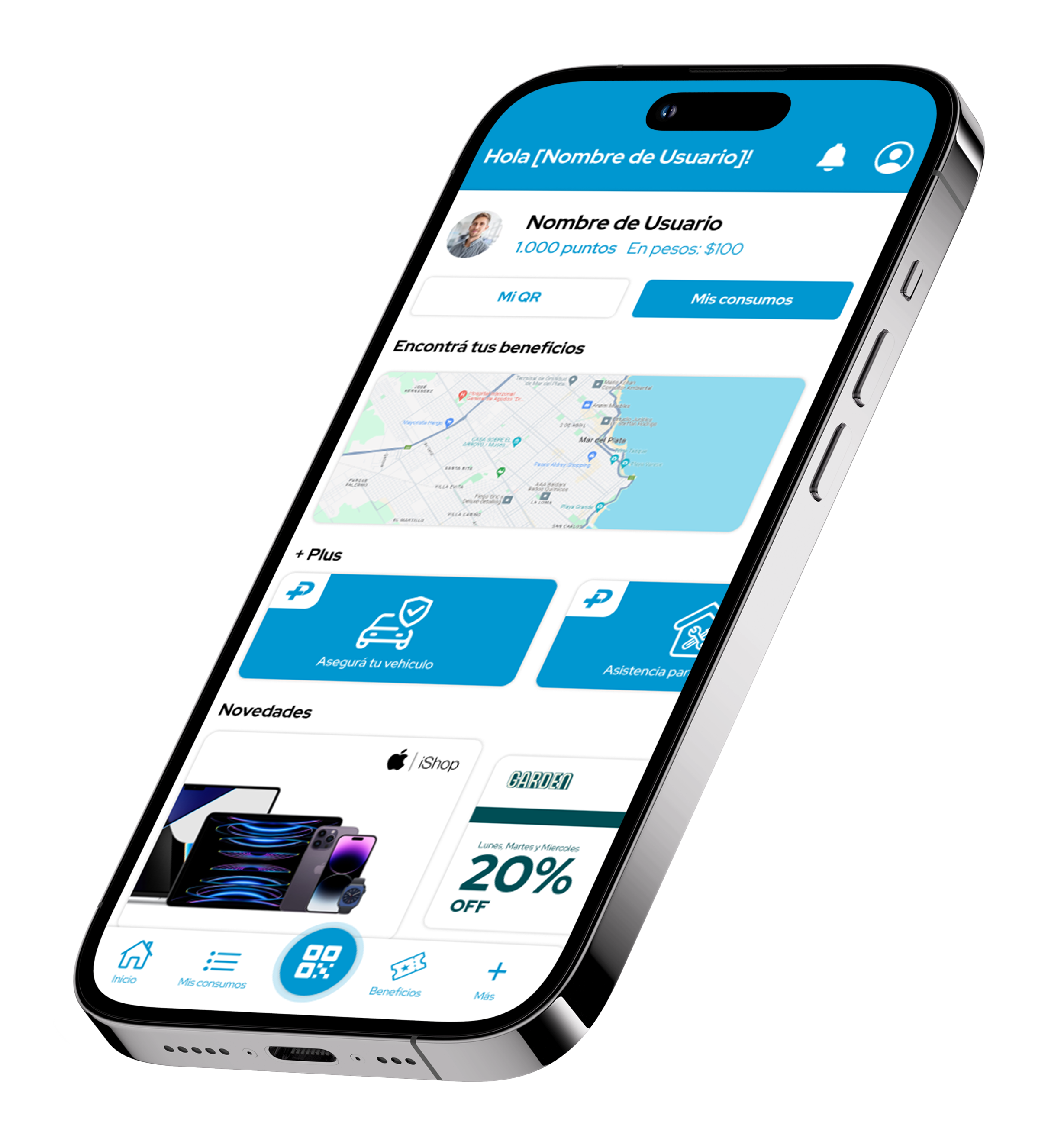 Es una aplicación GRATUITA, que te permite sumar PUNTOS y obtener DESCUENTOS en una amplia Red de Comercios de la ciudad.
